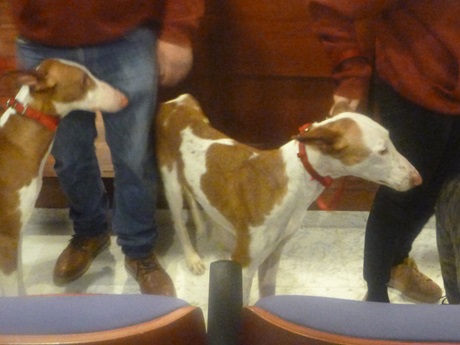Ibizenkische Podencos als Demonstrationsobjekte bei einem Vortrag über diese Hunderasse